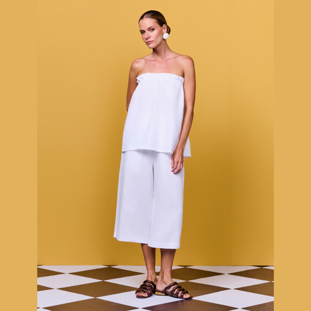 A Blusa Brisa tomara que caia é a escolha perfeita para quem busca estilo aliado ao conforto. Com elástico reforçado e acabamento franzido na área do colo, garante ajuste seguro e elegante. Seu comprimento abaixo da cintura proporciona versatilidade, combinando facilmente com cores monocromáticas ou vibrantes. Confeccionada em 100% linho branco, oferece alta respirabilidade e toque natural, ideal para o clima brasileiro.